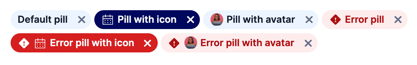 Form Pill Group has new and improved styles for each state. We’ve introduced a new error variant, added support for disabled Form Pills, and updated the documentation page to share how to use them in Figma along with more examples of the states.